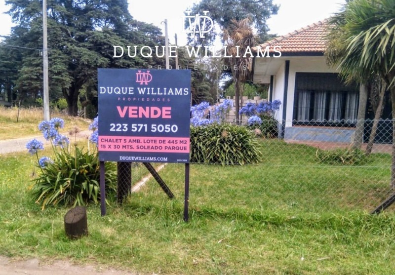 IMPORTANTE CHALET EN PUNTA MOGOTES Importante chalet de cinco ambientes en excelente ubicación en Punta Mogotes. Amplio estar comedor con hogar. Cocina comedor de generosas dimensiones. Toilette. Dependencia de servicio con baño. Lavadero. Garaje doble paralelo. Trotadora para dos vehículos. Parque. Amplio quincho semicubierto. En Planta Alta: Tres dormitorios, el principal en suite con balcón. Baño completo. Calefacción por calefactores. DUQUE WILLIAMS PROPIEDADES Registro 3814 Playa Grande, Mar del Plata 223 571-5050 www.duquewilliams.com