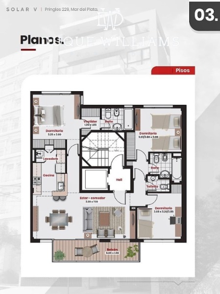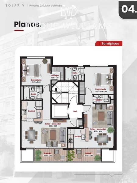 Terraza, gimnasio, solarium, lavadero y SUM con parrilla, en piso superior con vista al Golf de Playa Grande.